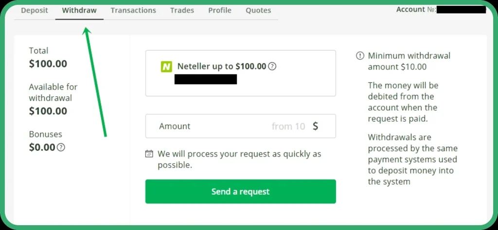• Navigate to “Withdraw” in your account